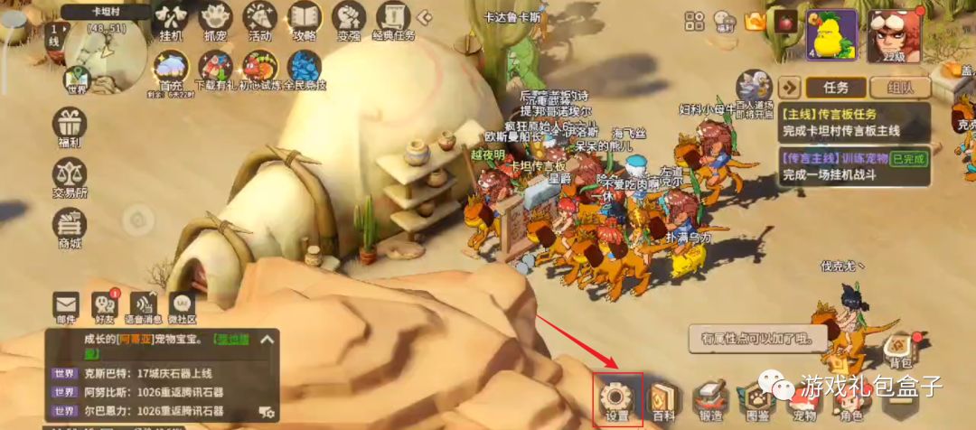 1、登录游戏,完成新手引导,回到游戏主界面,点击右下角的“设置”。