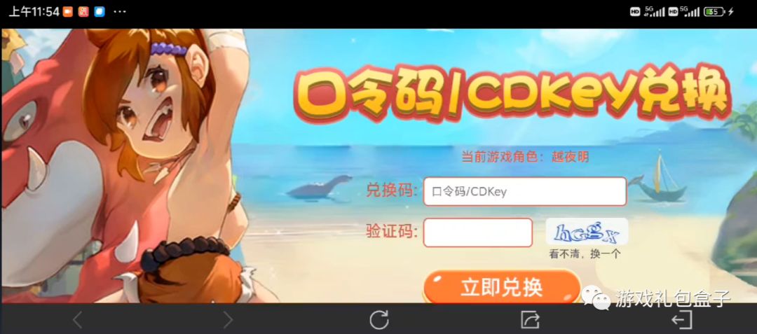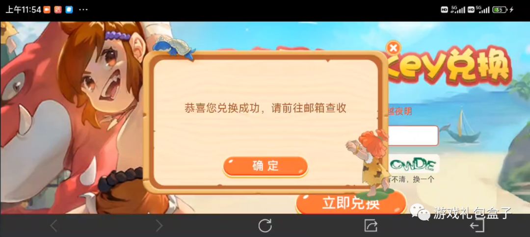 三、在“兑换码”输入框中,输入小编分享或领取礼包兑换码(尽量用复制,不要手动输入,注意区分大小写)之后,点击“立即兑换”按钮,提示兑换成功!