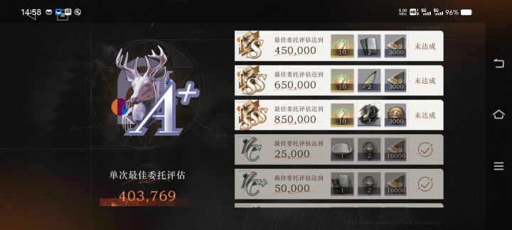 总论:这次活动说实话想打满不太现实,本来就是给氪佬准备的高满本,但只要打到A+(或者A)就可以拿到奖励的大头,不算太亏,一些因此破防想退游的真没必要,这样子换个游戏也会一样受不了想退游的,深蓝好歹已经把奖励大头放在前面了。