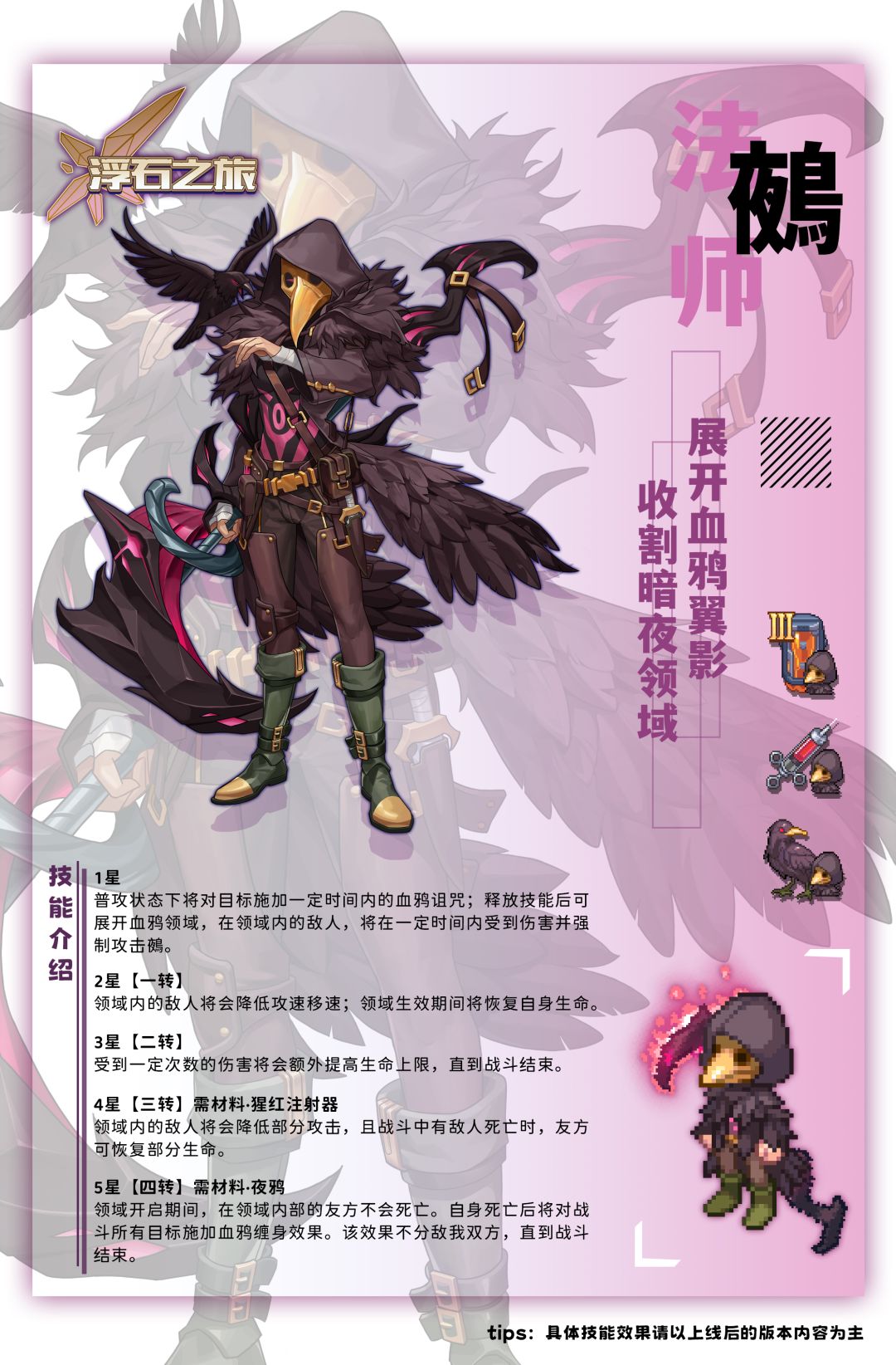 她是来自星球壁障的界外个体。从未有人看过她面具下的真面目,她只会在黑夜里与乌鸦一同降临……