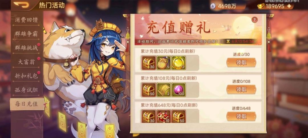 活动内容:活动期间,每日达成充值额度即可领取奖励!