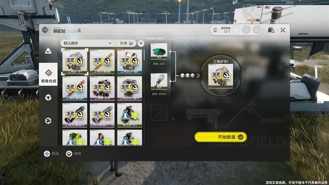通过流水线生产出的材料合成出角色装备