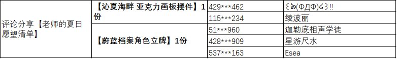 感谢各位老师对《蔚蓝档案》的支持与关注!恭喜以下幸运老师获得本次活动奖励!
