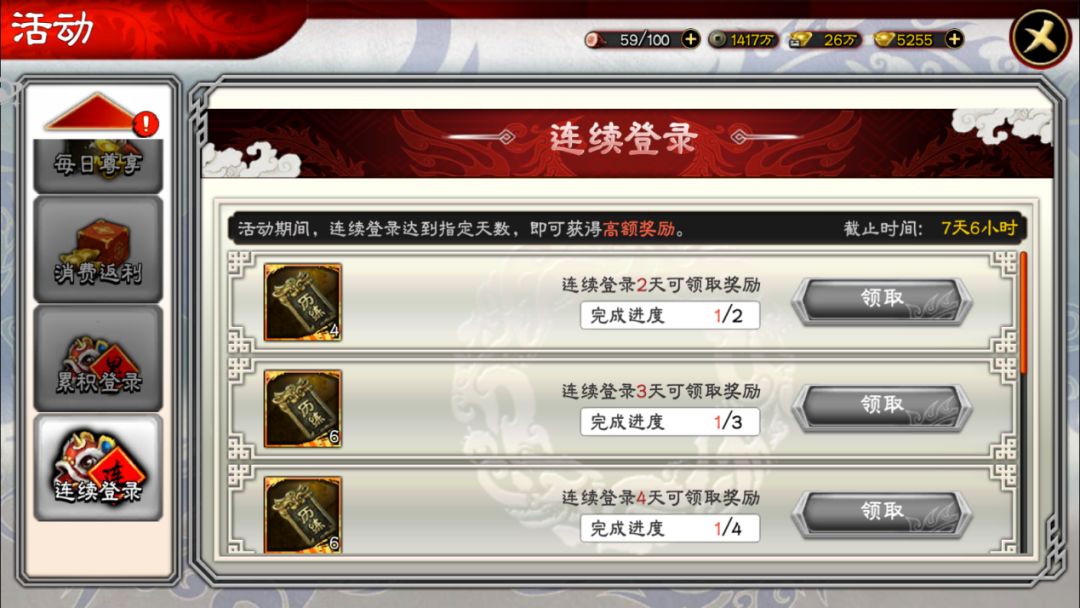 活动内容:连续登陆可获得历练令,参与活动副本可兑换稀有奖励