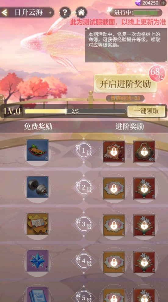 日升云海设有免费奖励和进阶奖励