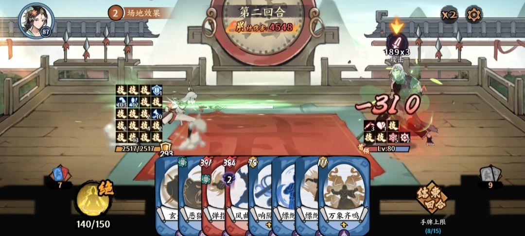 使用到八次牌时回合结束,