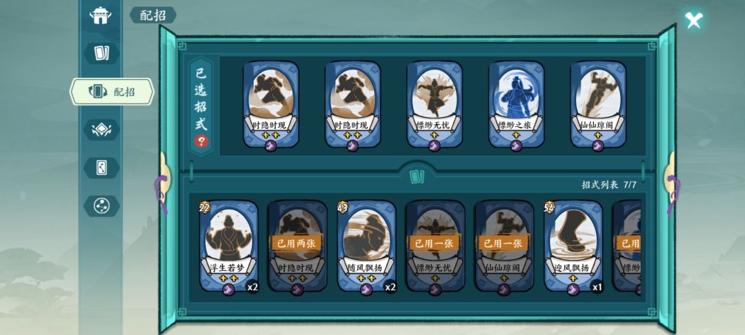 (前两回合摸到了要存的牌,但超过了两张,需要弃牌的话,直接重开,满星功法过牌速度极快)