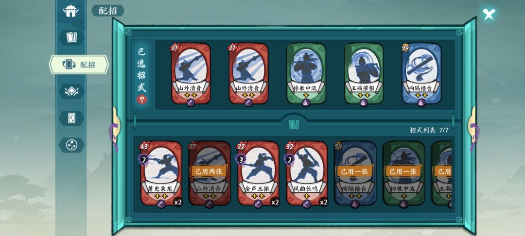 ③响隔楼台+(召回弃牌区全部剑法)