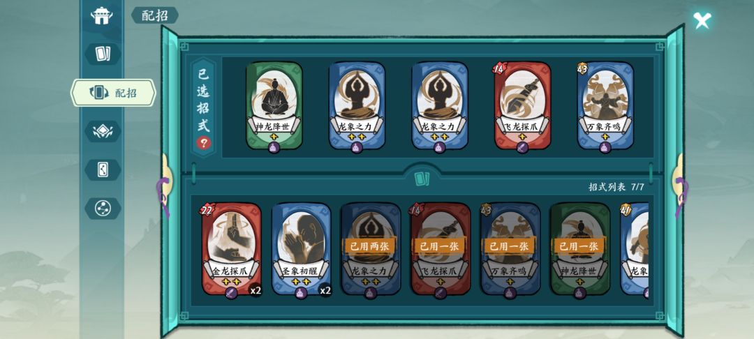 ②低星过牌慢操作:初始内力低,第二回合开始猴子,功法星级低且只能召回一次(只用一张万象之力被动)