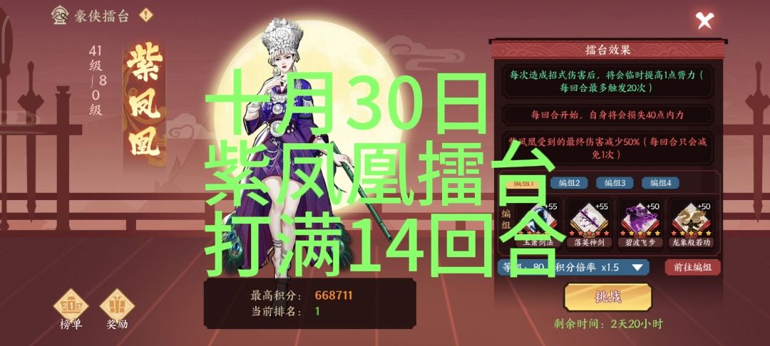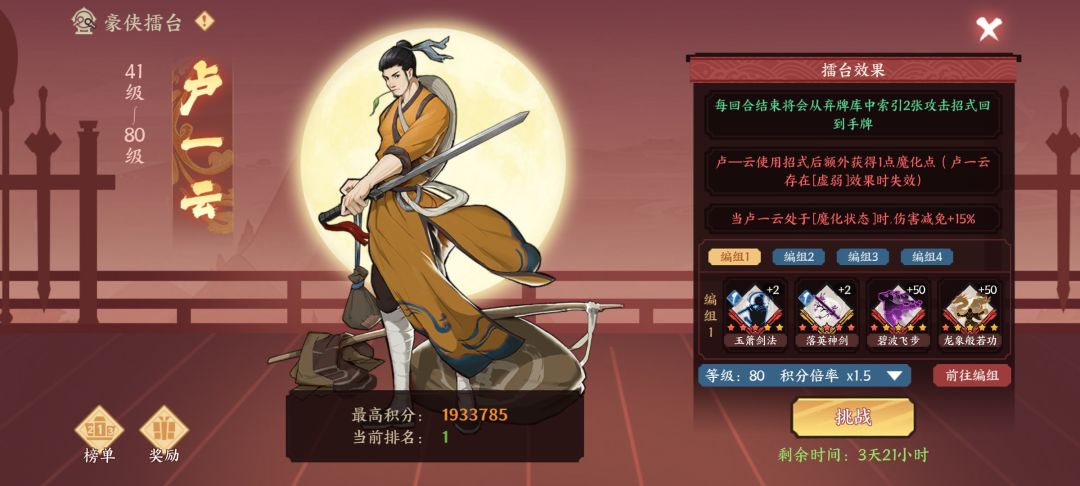 听不懂解释的直接看,下面擂台boss高乔峰视频,详细讲解(且高乔峰带弃牌大大增加难度),在回来看一下,就懂了。