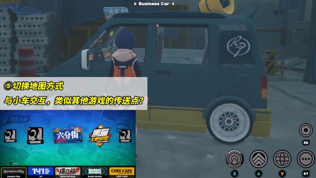⑤切换地图方式。街边有个小车车,与其交互可以加载前往一些更远的地区。猜测这个物品类似于传送锚点、界域定锚,让人物在地图的“传送”行为更加合理化。