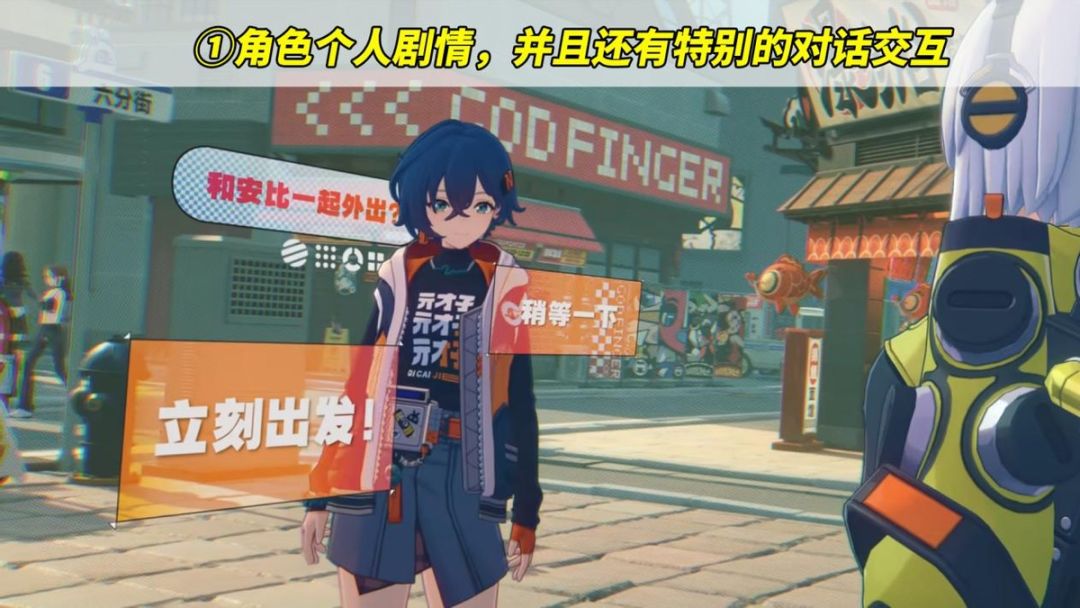 ①角色个人剧情。可能类似原神传说任务邀约任务,星穹铁道同行任务之类。并且在对话交互方面挺有意思,直接以半透明悬浮窗形式出现在人物两侧。应该只是涉及一些影响后续动作的取舍选项才会如此炫酷吧?观望一下。