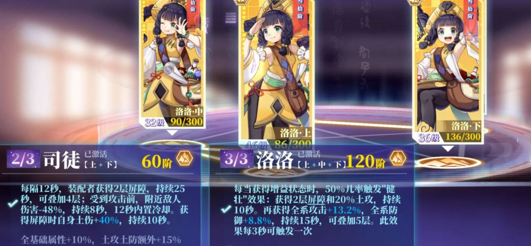 护盾能抵挡一次攻击,不管伤害有多夸张...有护盾加土伤——有土伤触发洛洛获得屏障跟土攻...