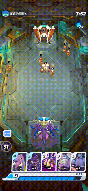 进行对决的「战场」由我方阵地和敌方阵地组成。在战斗开始后,每隔一段时间,双方的守护者会各自召唤一只胖古对对方的阵地发起进攻。同时,参赛者可以将己方单位在我方阵地的任意位置中进行召唤。