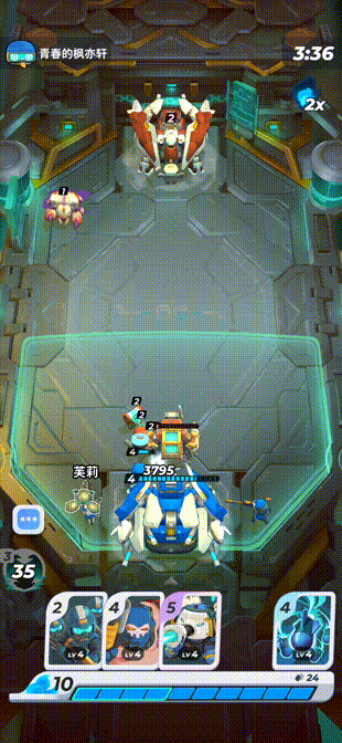 在战斗开始时,你的部队以「手牌」的形式呈现;在对决开始前,参赛者可以选择五张起始手牌中的任意三张进行置换,对决开始后,参赛者可以通过使用手牌中的卡牌召唤部队,每使用一张卡牌后,牌组中的卡牌将会以随机抽取的方式对参赛者的手牌进行补充;且每套牌组最多可携带30张卡牌。