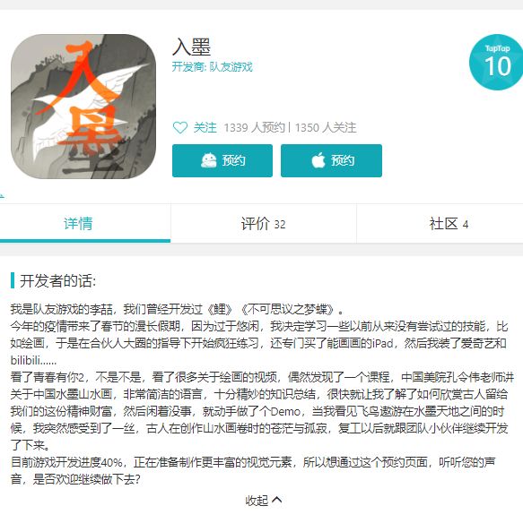 以上解锁内容可在菜单中关闭,一周目通关后还添加了关卡中新的隐藏彩蛋! 呐~各位小伙伴快去寻找新的彩蛋吧! 最后,安利一下队友游戏目前正在制作的新游“入墨”,有兴趣的小伙伴可以去了解下哟~传送门:https://www.taptap.com/app/197497