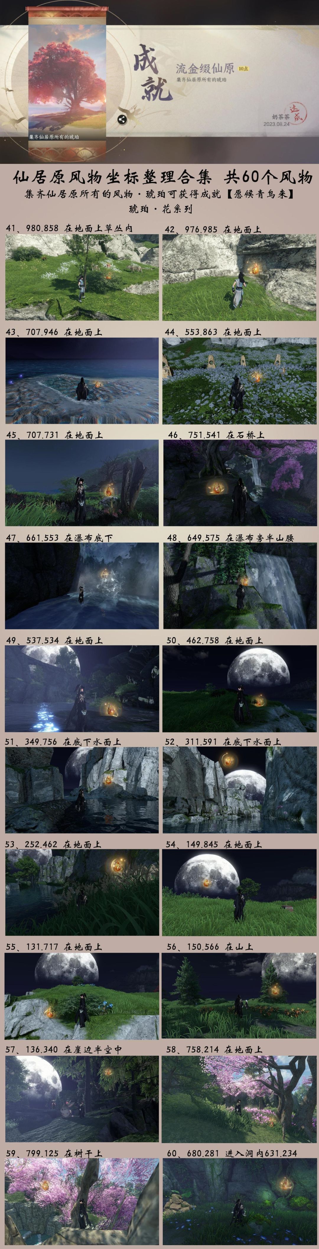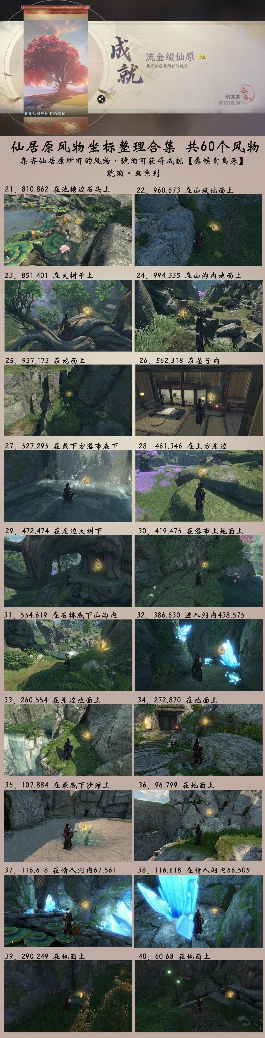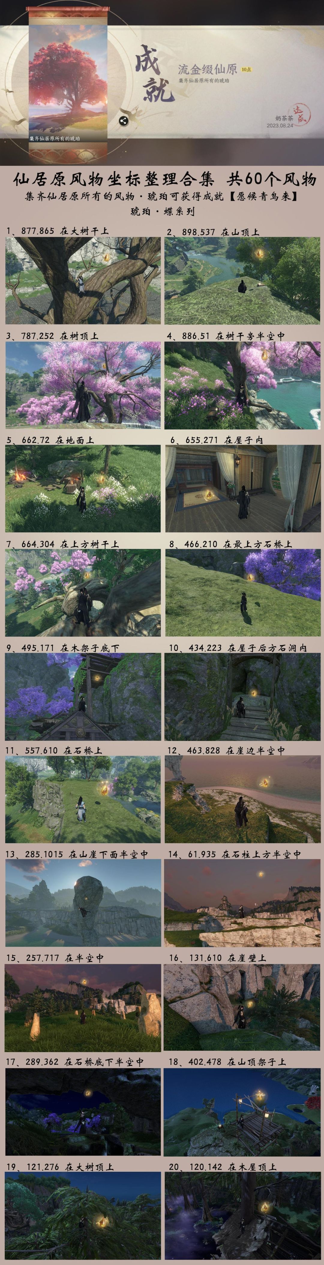 集齐仙居原所有的风物·琥珀可获得成就【愿候青鸟来】可在仙居原578.879与贺漱石对话,进入风物商店兑换物品,可以兑换趣味技能·琥珀鎏金、主页·主题·萌喵喵、主页·妙染金流云·左、主页·妙染金流云·右、药方·清心涤脉丹配方。