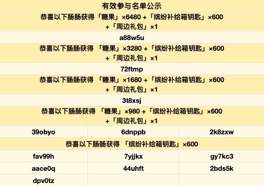 1名杰出攻略肠:可获得「糖果」×1680+「周边礼包」×1+缤纷补给箱钥匙×600;