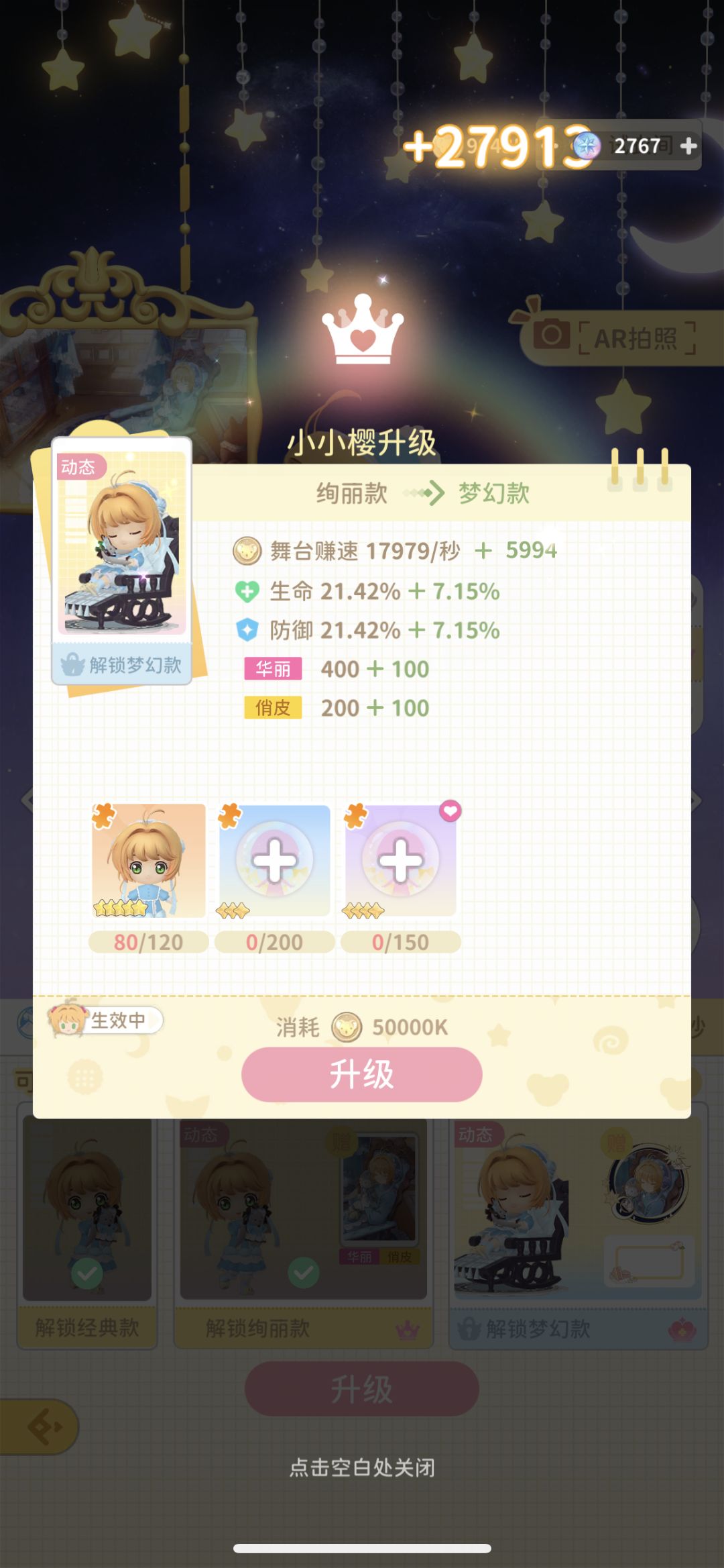 这之后心里开始窃喜,emmm也可能是狂喜。然后就觉得自己是天选之子呀,这都可以,看了一眼返利和图鉴,发现才80抽就67全有衣服,5星的小小礼物2级40碎片,小小画忆已经满了还多40碎片。命运的齿轮开始转动。。。