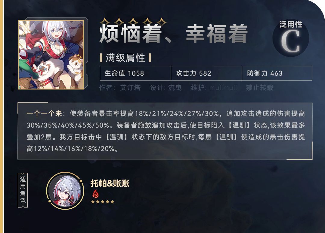 希儿的专武对于希儿自然是有用的。但对于托帕来说,除了暴击率外,多少能吃到一些普攻和战技增伤,以及终结技的额外暴伤。能吃但也只能吃一点点,效果不是很好,能用但不好用。比较明显的就是,托帕使用这张光锥,也基本是吃18暴击率的白板。
