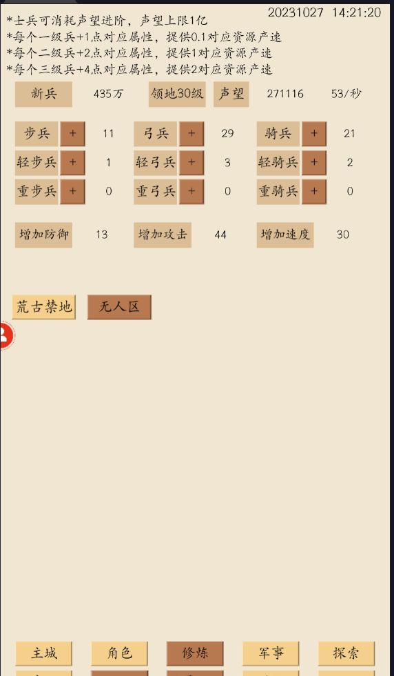 70级打炼金消耗记录,因为没怎么点步兵的防御,所以炼金前段后端都是走的攻击路线。这个消耗在2100w左右。勉强能接受吧。再加一点攻击也就降十万粮食消耗没投资的意义了。就这么打了吧。附伙伴科技军事等级供参考。