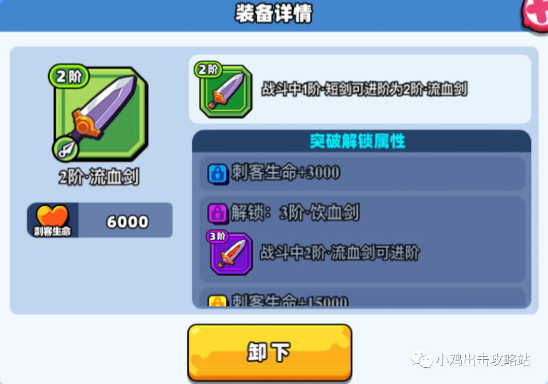 突破解锁属性2(紫):可以在战斗中2阶装备,通过再次捡羽毛进阶为3阶的装备。