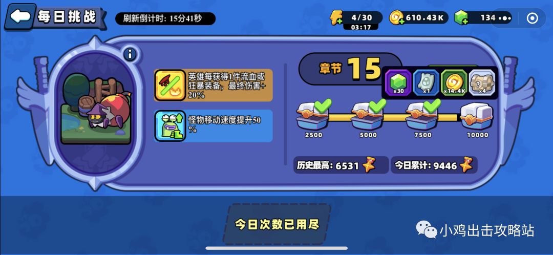 目前在不氪金的情况下只有每日挑战可以获得装备,每天挑战奖励拉满可以获得10件1阶的装备,所以每日挑战必须打,比通关副本还重要,也不用考虑能不能通关,每天2次到达50%就可以拿满奖励。