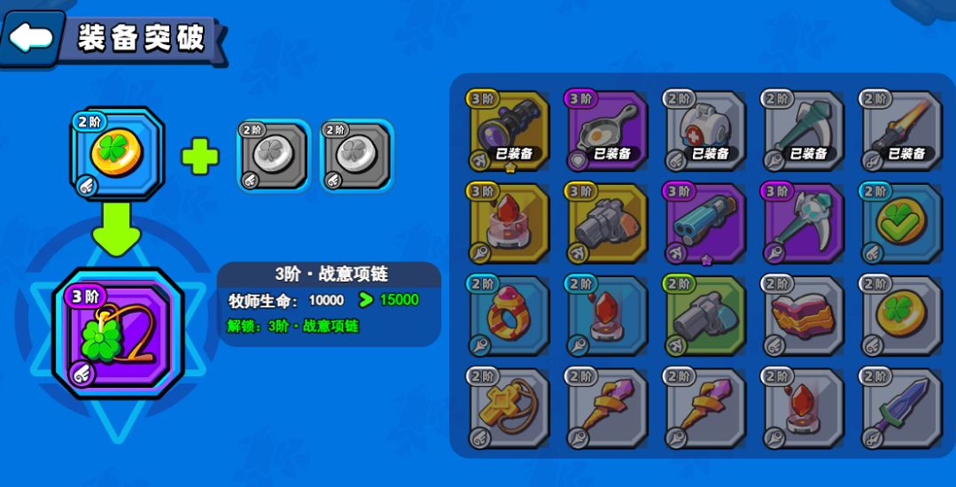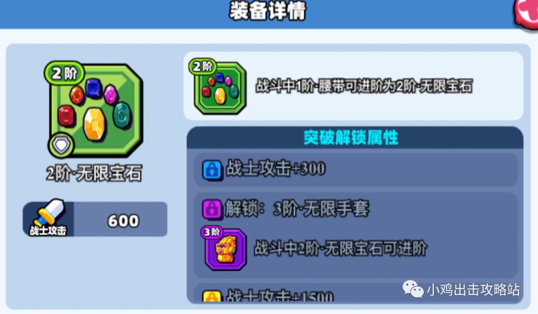 装备都是战斗中2阶的装备,每个装备有基础属性和突破解锁属性。