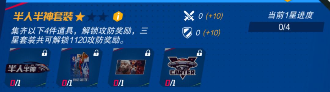 集齐一套【半人半神】系列4件套外显套装(头像、背景板、称号和球员形象),还可额外获得20战力点加成。集齐三星套装共可解锁1120攻防奖励。