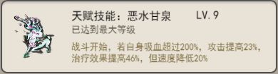 技能思路:堆叠吸血属性达到200%即可,针对击晕和闪避可以带上法则【四象】,核心忽视属性仍然是闪避和连击,技能一般为【恶水甘泉】+【凝神回击】+【无形春风】,宠物属性则需要抵御+吸血。
