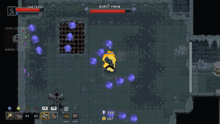 有不少动作肉鸽游戏会通过限制玩家灵活性的方式来增加难度,但是《传说法师》则反其道而行之,直接把玩家角色的灵活性拉满,在这个游戏里你会觉得自己无比强大,如果你操作足够好,甚至可以全程不拿任何强化道具,只靠初始的角色能力也能打通关。