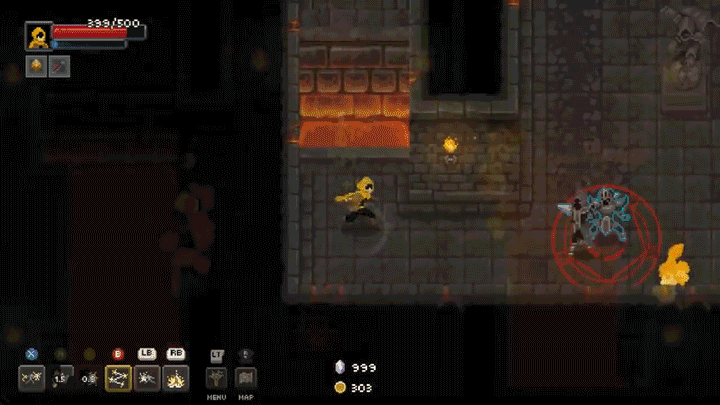 但是在这个游戏里,闪避没有无敌帧,所以完全靠闪避来生存并不可行,不仅如此,策划还非常恶趣味地设计了很多走进去就封闭起来的小房间,里面会刷出来大量的敌人,敌人的进攻欲望又都极强,想靠冲刺躲过所有攻击根本不可能,主动出击压制敌人才是正解。