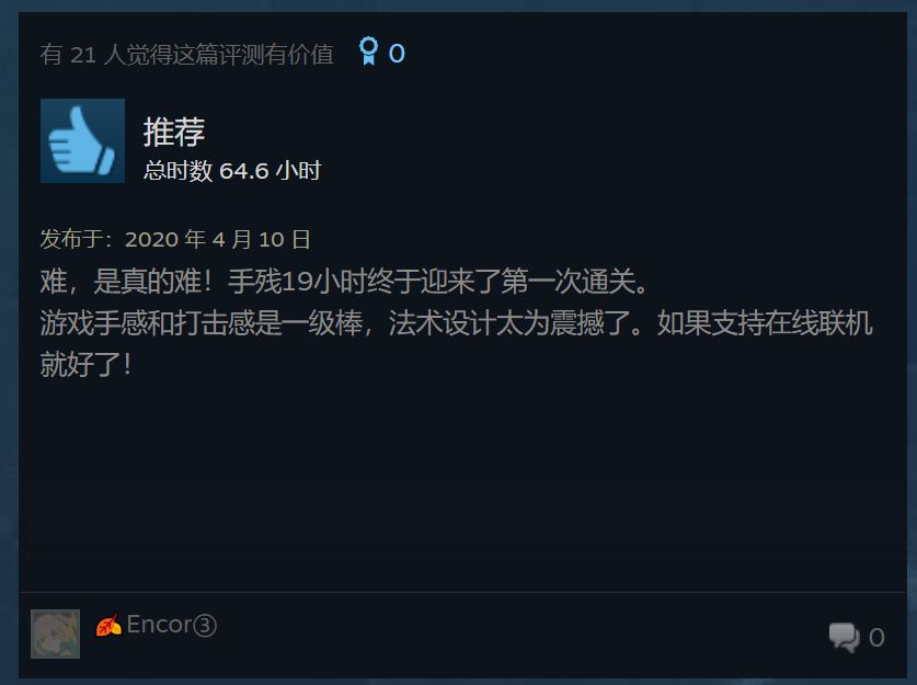 并不只是我这样认为,翻开Steam的评论区,你可以看到一大堆关于打击感和法术设计的赞美。