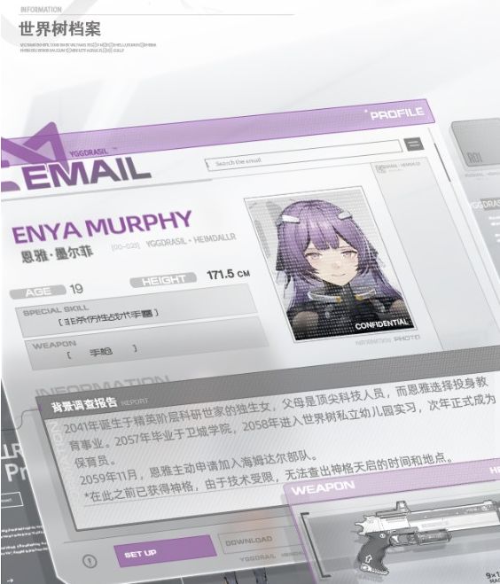 恩雅5星作战服装可以设定成本来给做的纯奶服装,可是恩雅想和队友并肩作战所以给作战服装加了供能装置(电击属性)由于供能装置负载较大所以开启后对自身也会造成损害(可以把恩雅基础生命值提高)
