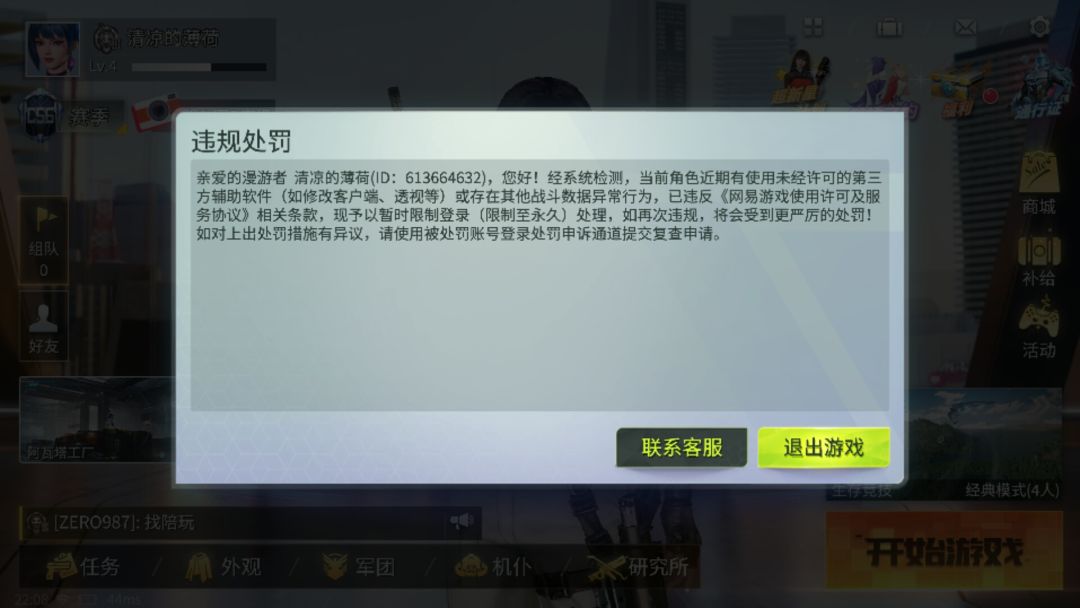 今天我刚开始玩量子特工,打到了4级,打了3局人机,两局经典,4次冠军,然后又去训练场,玩了一把空投产的稀有步枪(枪名字忘了),这枪简直是个外挂枪,打起来基本无后坐力,我退训练场之后没过多久我号就封了,我在想我被误封的几个原因。