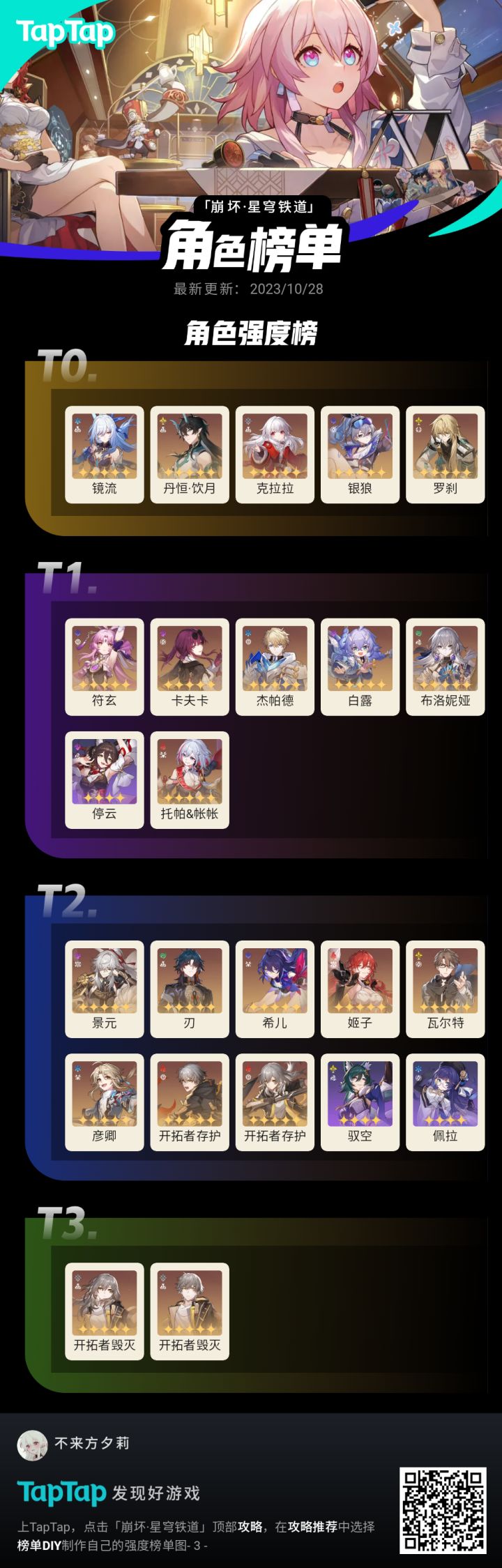崩铁1.5版本强度榜单(镜流有专武为t0没专武为t1或t2)