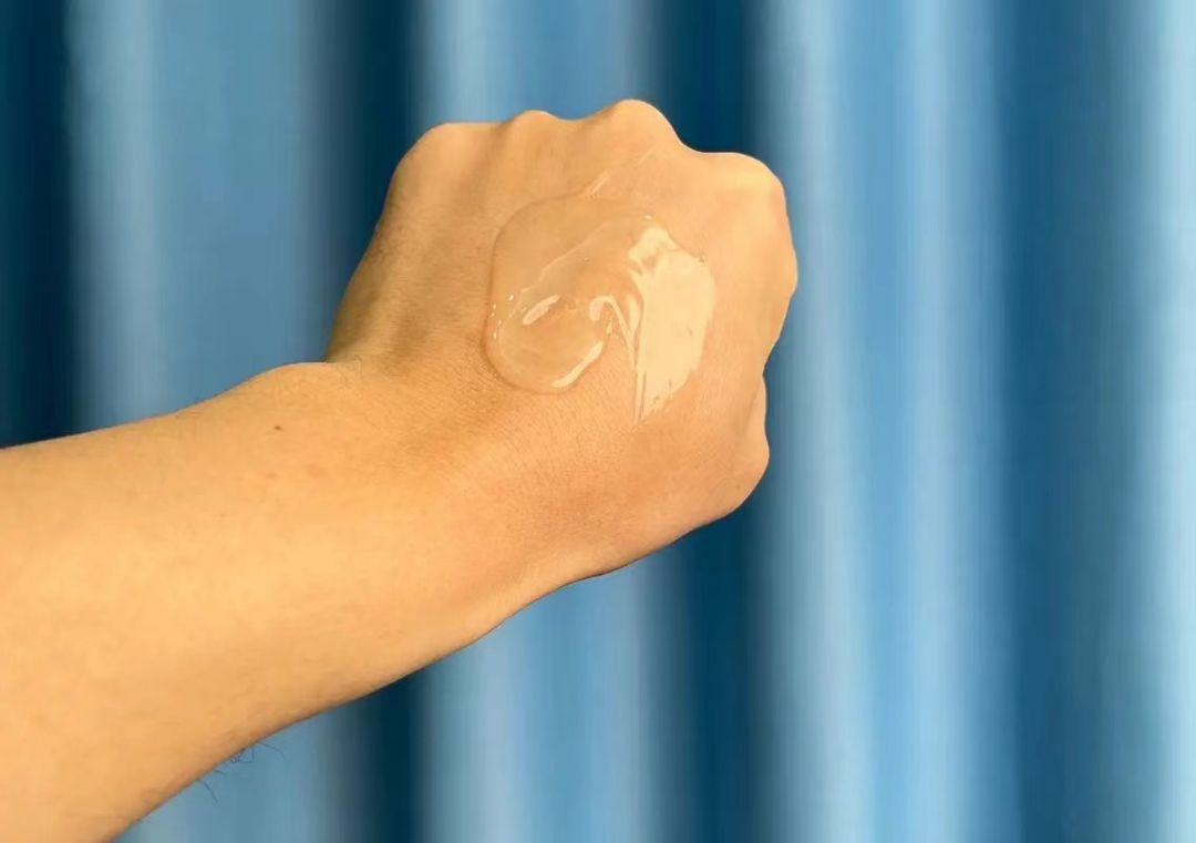 米黄凝胶质地,质地粘稠有流动性,推开可以拉丝,没有颗粒磨砂感。