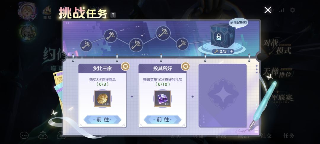 点击任务开启每日宝箱,领取并完成每日刷新任务可以获得丰厚奖励。