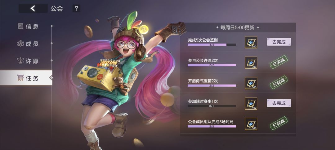 另外可以通过叠加活跃度,获取公会币进行许愿获取奖励噢