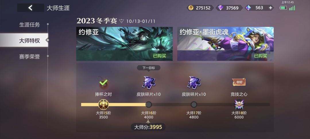 大师达到一定等级是可以低价购买到超值皮肤的 ,小伙伴们冲