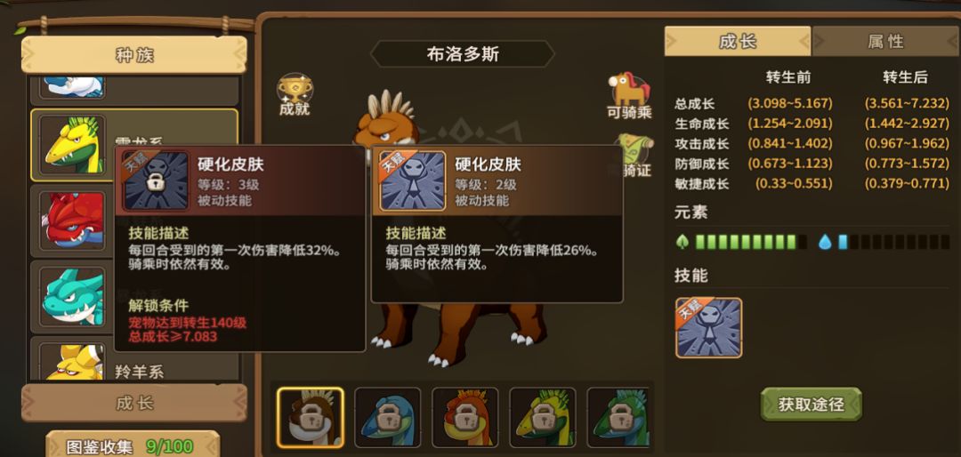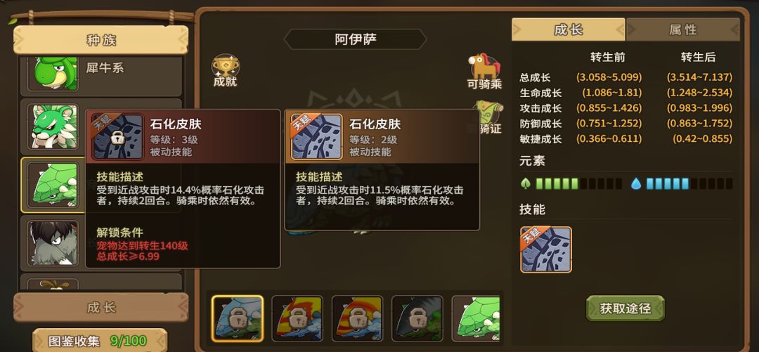 (2)雷龙(硬化皮肤)每回合受到第一次伤害降低;乌龟(坚盾闭守)当生命值低于50%时触发,受到的伤害降低40%;穿山甲(石化皮肤)受到近战攻击时11.5%概率石化攻击者;宠物技能可以搭配忠犬,在战斗时优先保护脆皮角色生命。