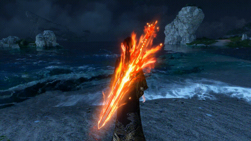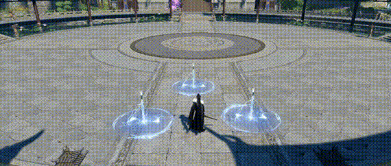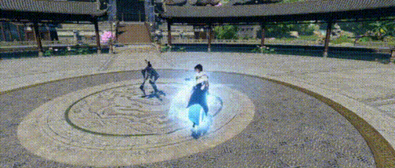 第一段突刺画圈,腾空下砸,并生成三把气剑。第二段剑意追击引爆气剑。前半段的突刺画圈有无敌效果。