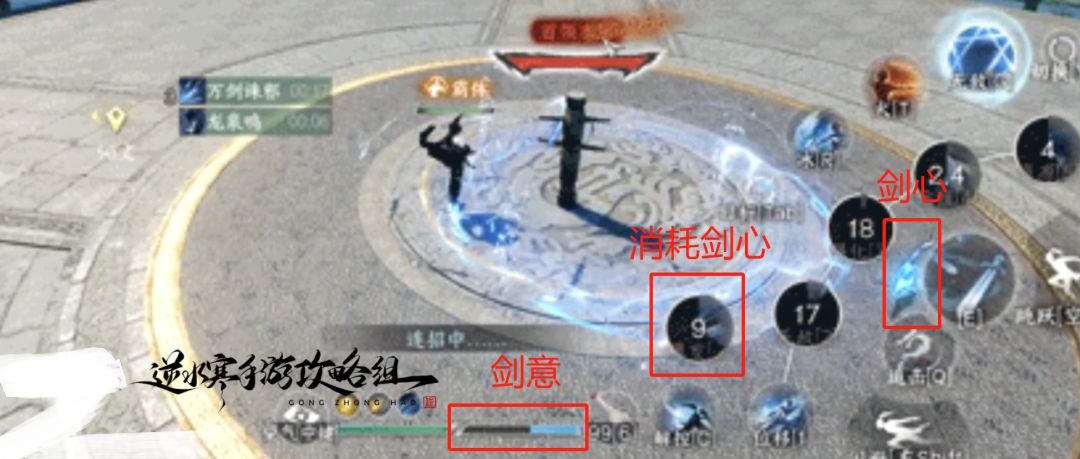 剑意:普攻、追击或释放技能获取,释放剑意追击消耗剑意