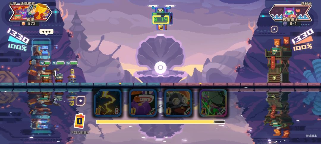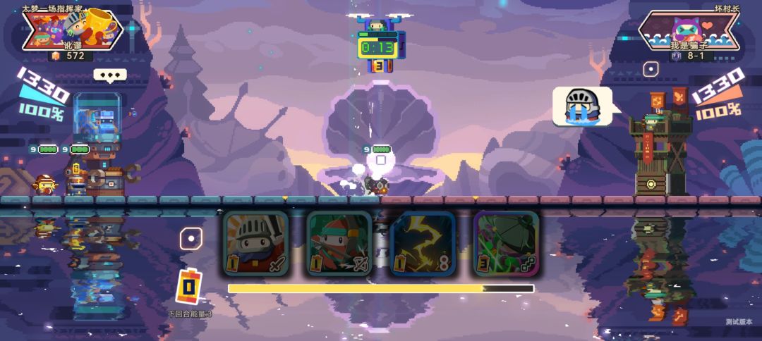 对面一群豆丁推过来,用剑士,峰卫,小电池挡在塔下,后面用弓箭手补伤害,用闪电批远程,杀到三个后,再使用一刀斋贴脸进攻。