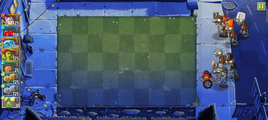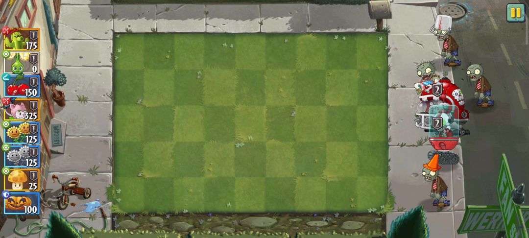 精英僵尸是投罐车,注意防守,利用国服藤蔓植物损失不计入损失数的机制,把二三排植物布满南瓜,猫尾草尽量多放,争取减少脉冲黄桃的使用(用大导弹秒电磁盾),开局阳光不够可以投罐补阳光,在鸡贼波之前种好三只猫,冰西瓜可以用来打群怪