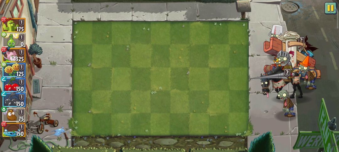 需要注意本关25个植物数量的限制,小心种子变出的植物超出数量限制,开局可以顶格种植物,再用南瓜头堵门,防止骑兵冲刺,僵尸多时冰西瓜开大,冰西瓜两颗足矣