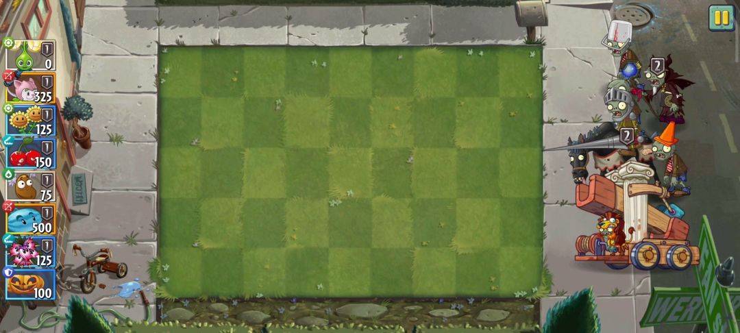 骑兵团与大法师较为棘手,最后两波的骑兵很难打,加上攻城车会碾压前两格植物,所以有两种思路可供选择