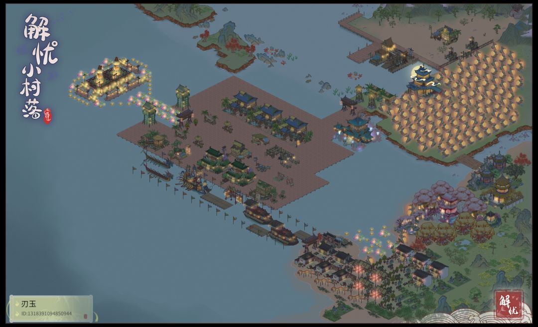 这次相较上次海岛布局,新增了明月灯笼搭建的隔离带,用来引导驿站村民从浅滩走回海岛驿站。一共使用了130个明月灯笼。效果如视频,分别录制了白天黑夜的效果。由于时长,视频进行了加速处理用来更好的展示效果。