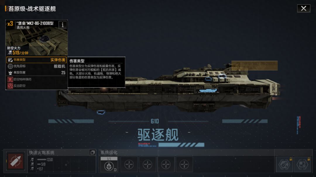 澄海级导弹型单发伤害192(DPM比较虚)对驱逐舰有效伤害约82%对巡洋舰有效伤害约65%对战巡无法造成有效伤害