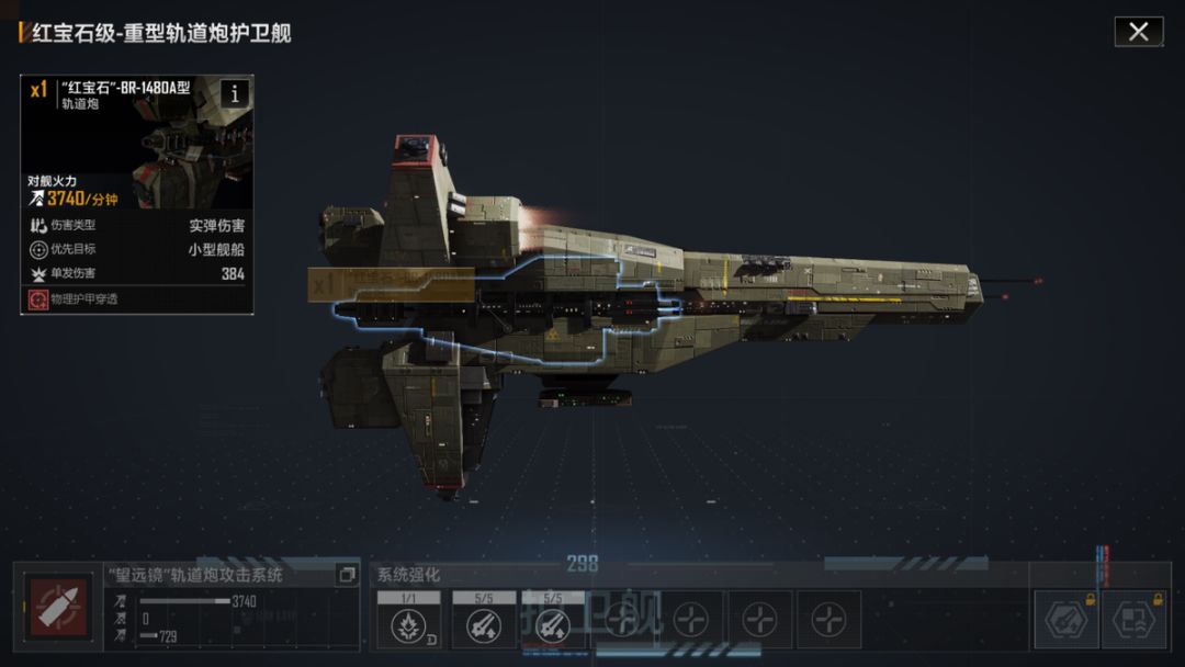 红宝石轨道炮型单发伤害384(DPM比较虚)对驱逐舰有效伤害约90%对巡洋舰有效伤害约70%对战巡无法造成有效伤害